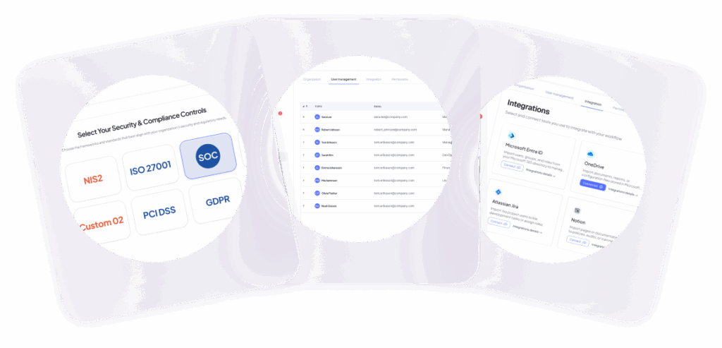 Through API-based integrations with platforms such as AWS, GitHub, Okta, and Google Workspace, GRCentric enables automated evidence gathering, continuous control monitoring, and streamlined compliance management.